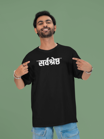 The Kriti brings together power, style, and devotion with the सर्वश्रेष्ठ Lord Shiva Oversized Graphic T-shirt. This oversize regular fit tee features a classic round neck and relaxed sleeves, offering a timeless and comfortable silhouette. Crafted from soft knitted fabric, it provides all-day ease. The bold “सर्वश्रेष्ठ” text on the front and the striking Shiva graphic on the back add a spiritual and artistic vibe to your casual wardrobe. A perfect tee that combines heritage, meaning, and modern streetwear appeal.