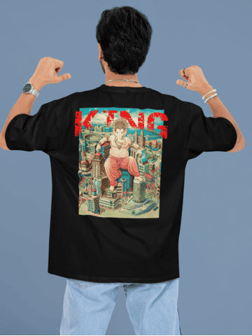 Threads of Creativity presents comfort inspiration & devotion with our Oversized Graphic T-shirt. This oversize regular fit tee is designed with a round neck and oversized sleeves, offering a classic, relaxed silhouette. The soft knitted fabric ensures a cozy fit, while the striking Shri Ganpati as graphic adds a meaningful touch to your casual wardrobe. This Perfect tee blends style with a sense of devotion.