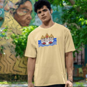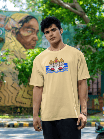 Threads of Creativity presents comfort inspiration & devotion with our Oversized Graphic T-shirt. This oversize regular fit tee is designed with a round neck and oversized sleeves, offering a classic, relaxed silhouette. The soft knitted fabric ensures a cozy fit, while the striking Lord Brahma as graphic adds a meaningful touch to your casual wardrobe. This Perfect tee blends style with a sense of devotion.